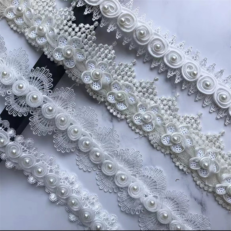 5cm高档蕾丝水溶珍珠花朵花边